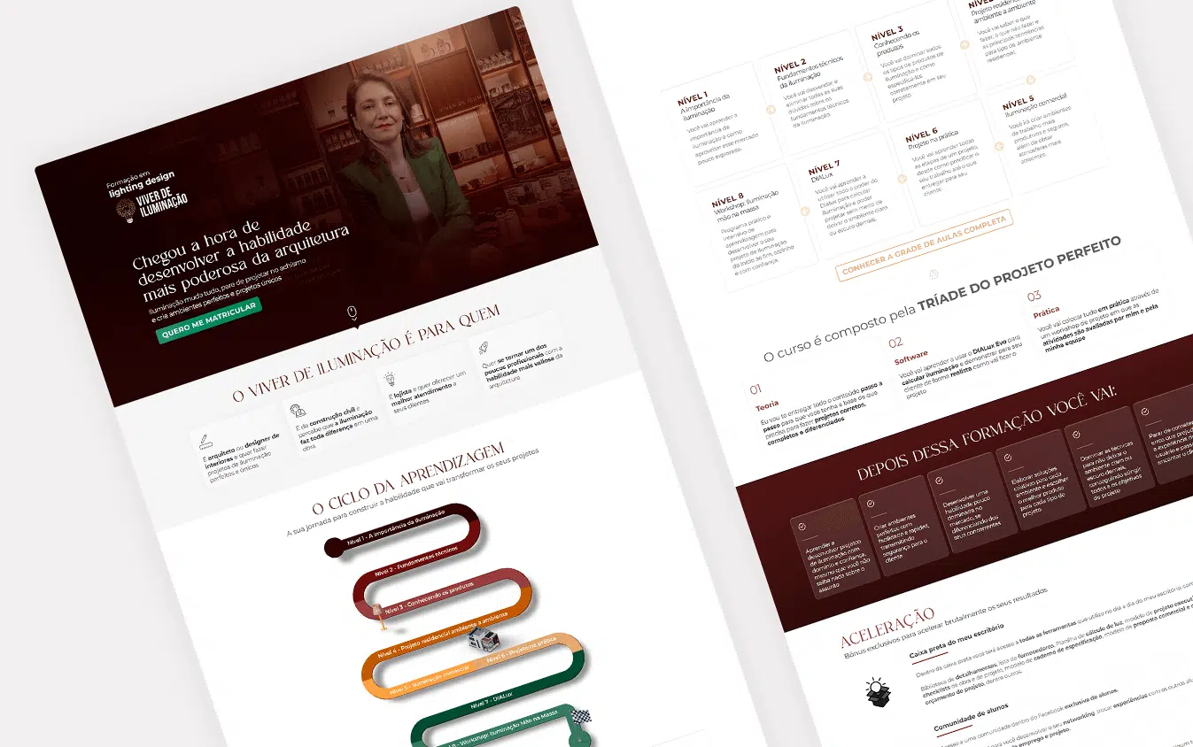 Criamos o design da página de vendas do curso de forma estratégica. Unindo design e funcionalidade, entregamos uma página com design responsivo – adaptável a todos os dispositivos – focando no aumento das conversões em vendas.